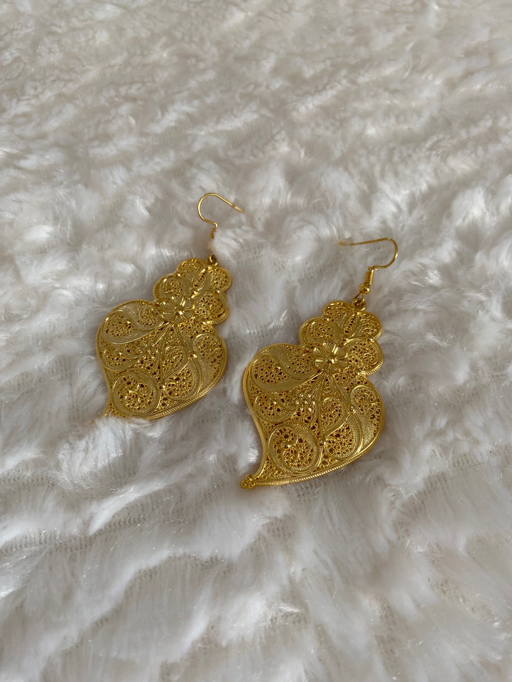 Boucles d’oreilles plaqué or ornées du Cœur de Viana, symbole iconique de la tradition portugaise.
