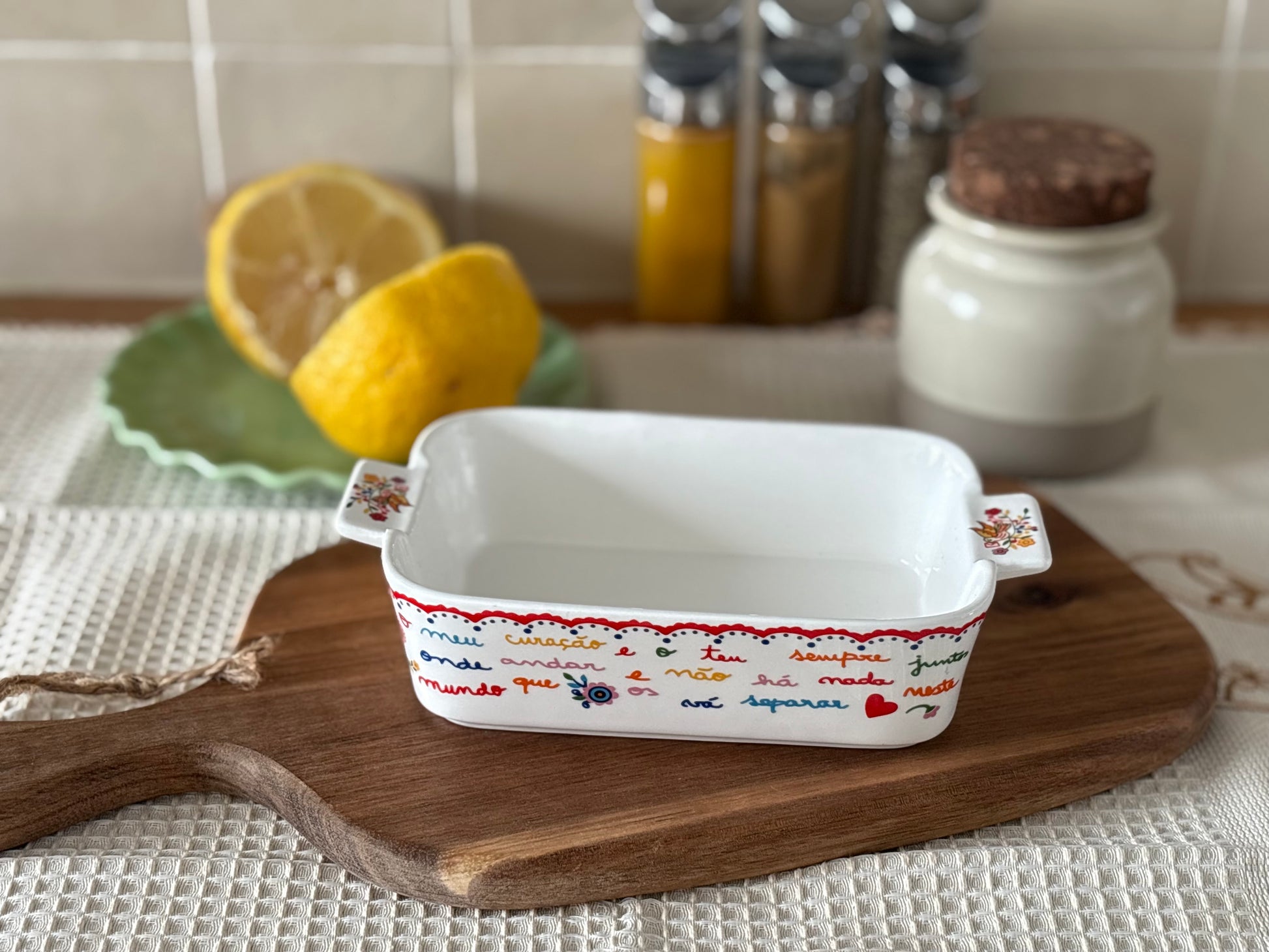 Plat en céramique peint à la main, idéal pour gratins individuels, légumes, desserts ou plats à partager.