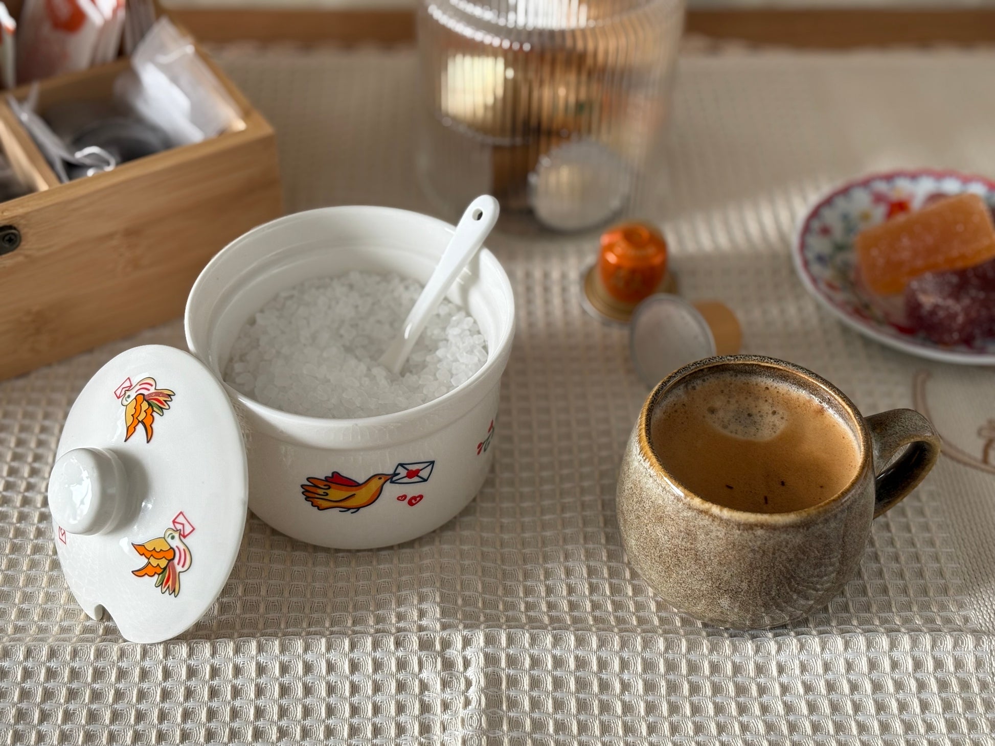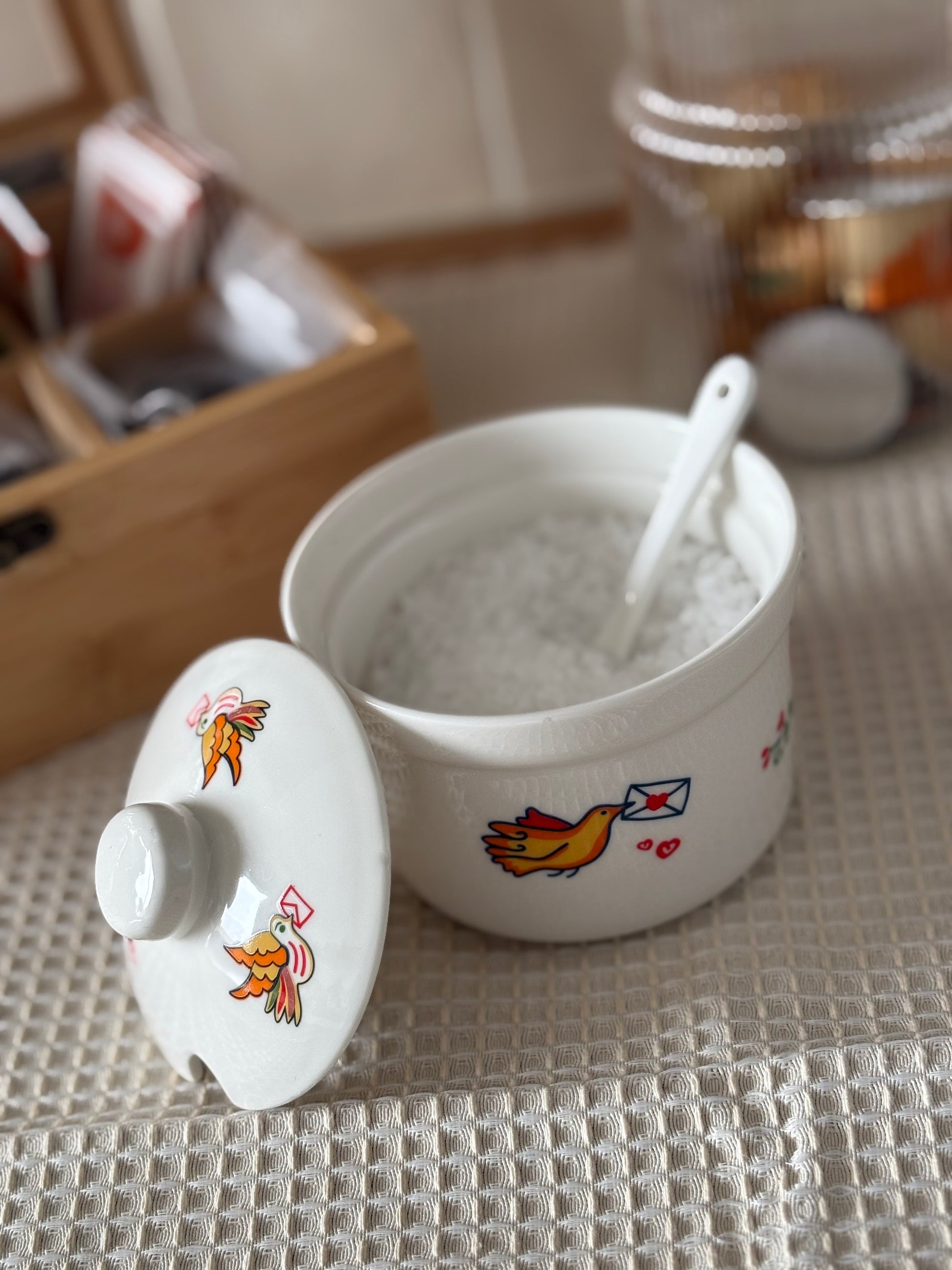 Sucrier en céramique peint à la main, idéal pour le sucre en poudre ou en morceaux.